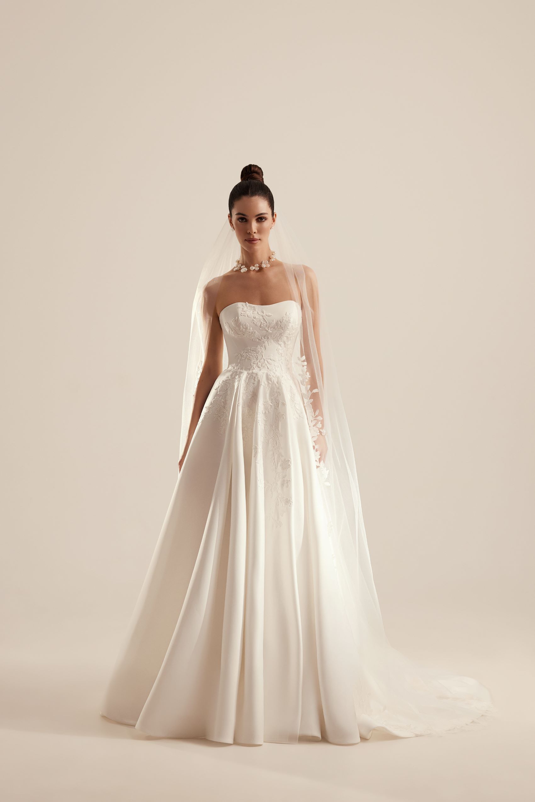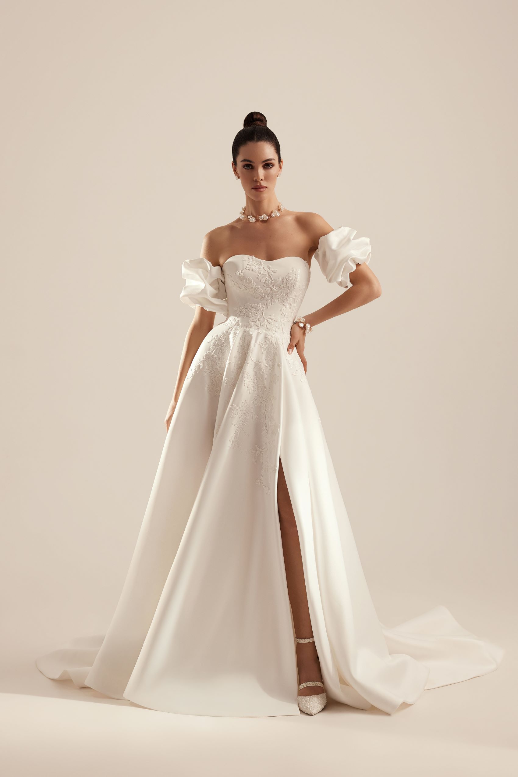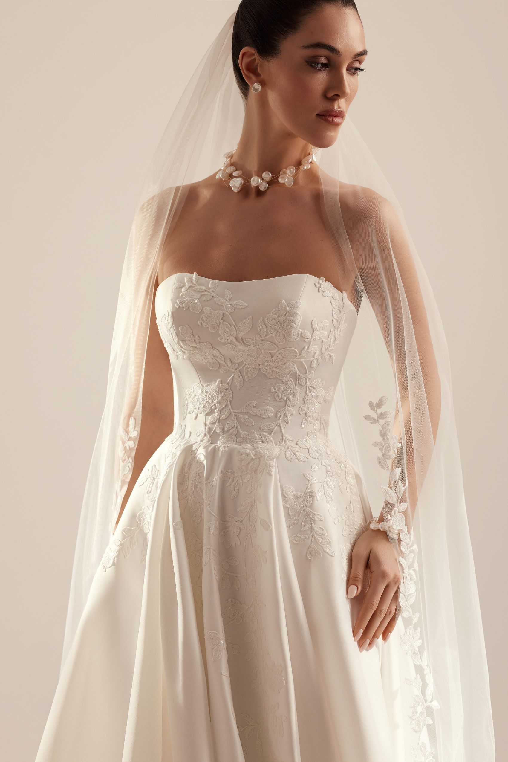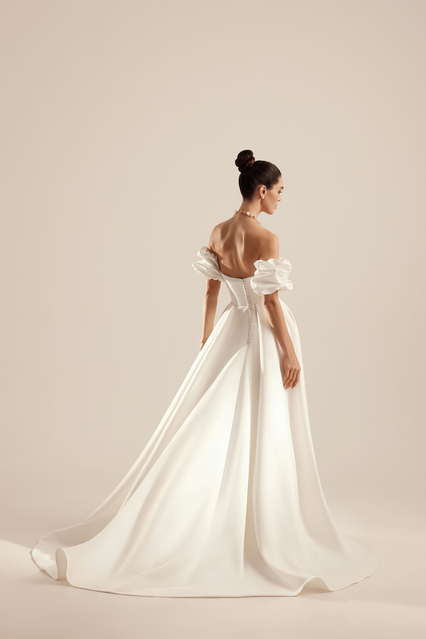 The Isabel follows the current wedding trends, which include multifunctional details, transformation elements, and textures. This dress is perfect for classic weddings in large halls, luxurious garden ceremonies, or estates with beautiful architecture. It was created for brides who dream of a stylish and comfortable look at the same time.