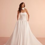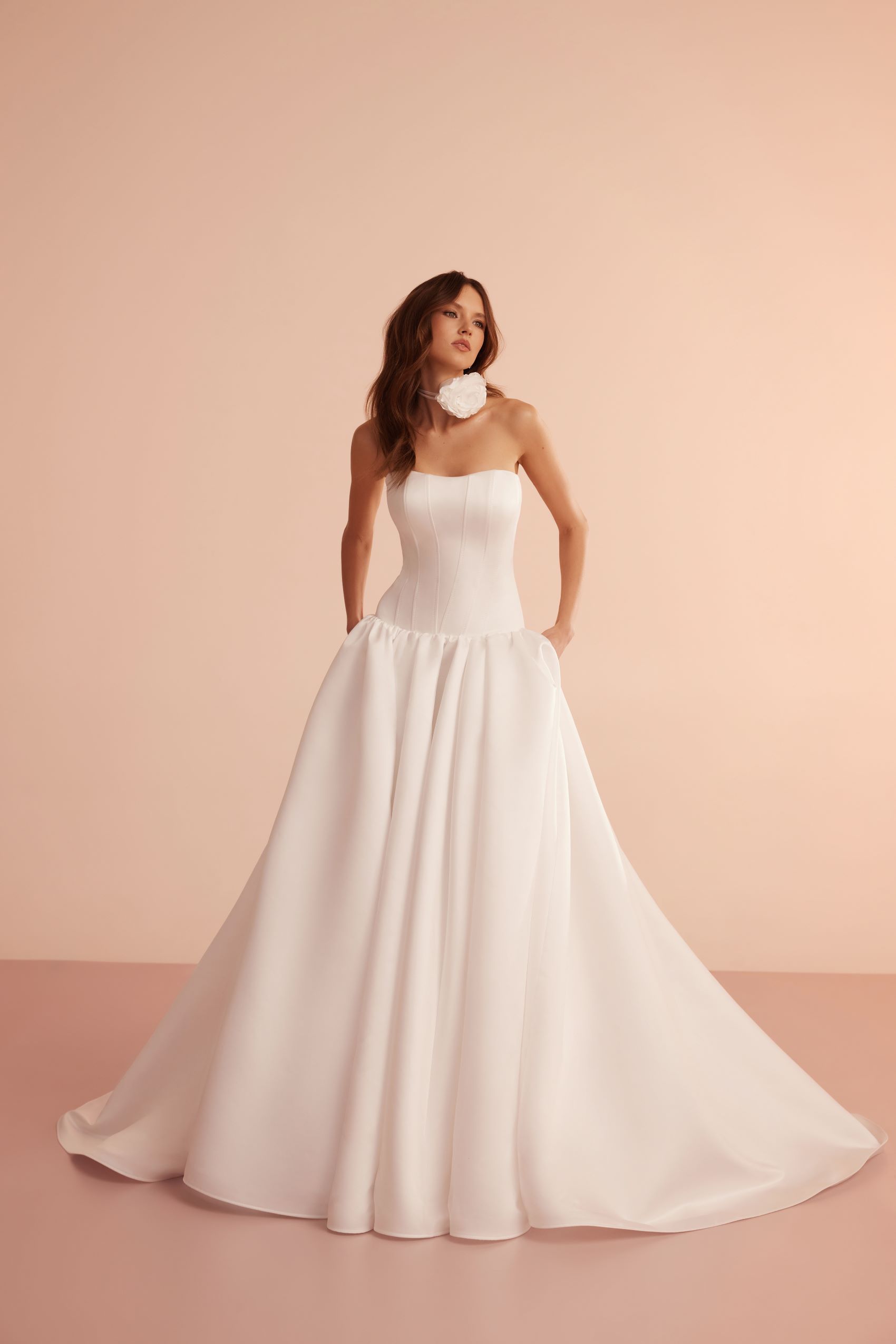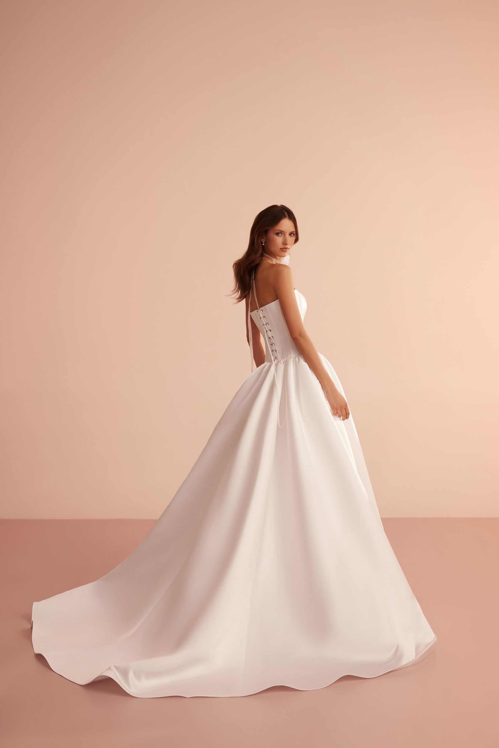 Pentru acesta colectie de rochii de mireasă, fiecare design este creat cu atenție pentru a aduce în prim plan eleganța și frumusețea naturală a miresei. Materialele luxuriante, cum ar fi satinul moale, organza fină, mikado, tafta sunt folosite pentru a crea siluete elegante și fluide, sunt alese cu grijă pentru a asigura o cădere impecabilă a țesăturii și o senzație plăcută la purtare.