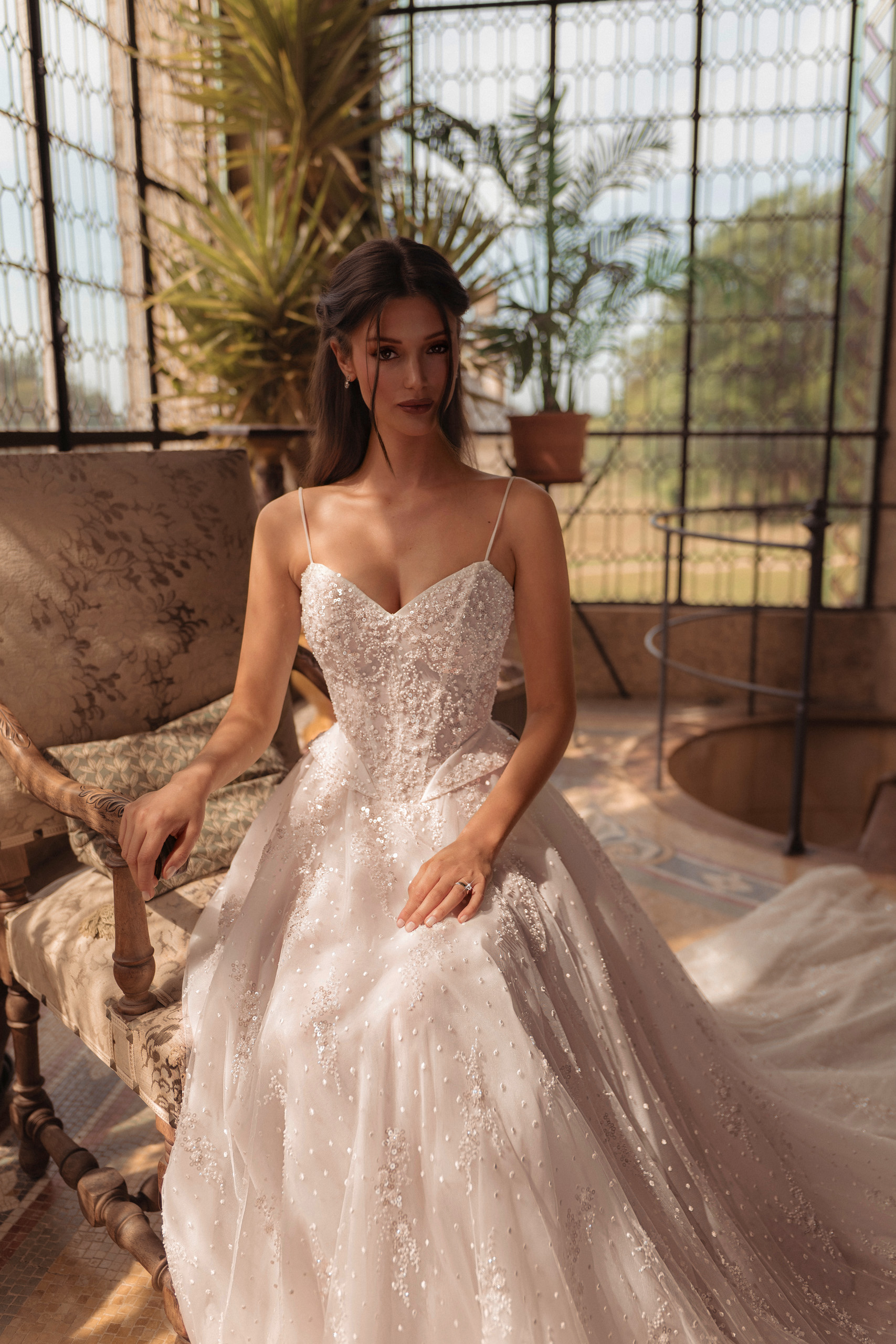 Rowan este o rochie care strălucește fără efort, cu fiecare pas. Corsetul delicat, cu bretele subțiri și aplicații fine, conturează frumos silueta, iar fusta diafană, presărată cu sclipiri discrete, adaugă un aer de poveste. Este genul de rochie care te face să simți că întreaga lume se oprește doar ca să te privească. ✨